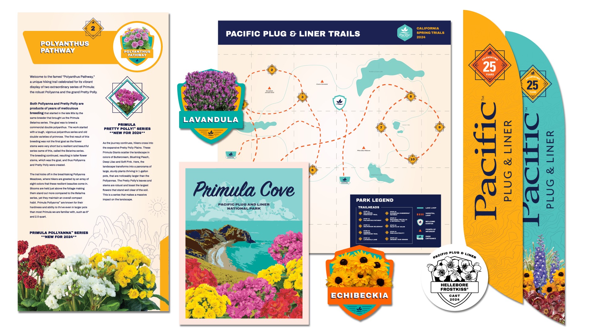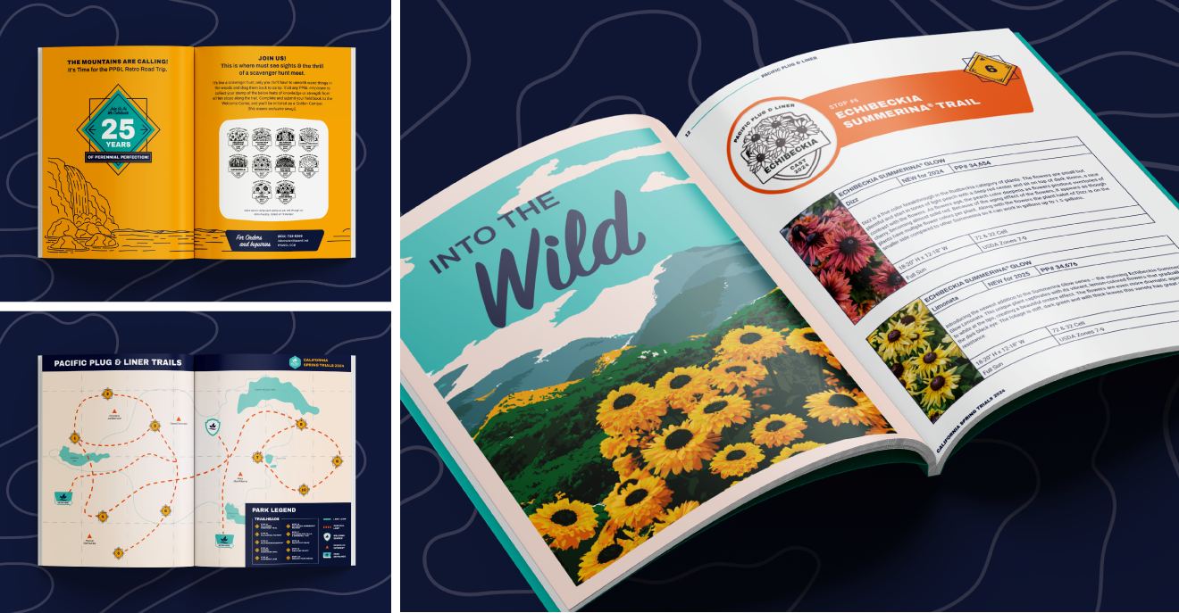 Each year Pacific Plug & Liner, a well known supplier of unique and exciting perennials, participates in the California Spring Trials (CAST). They have become known for hosting the most interesting booths at the event and this year was no exception. With a prompt of National Parks, we were tapped to create a concept for digital, print and event collateral.