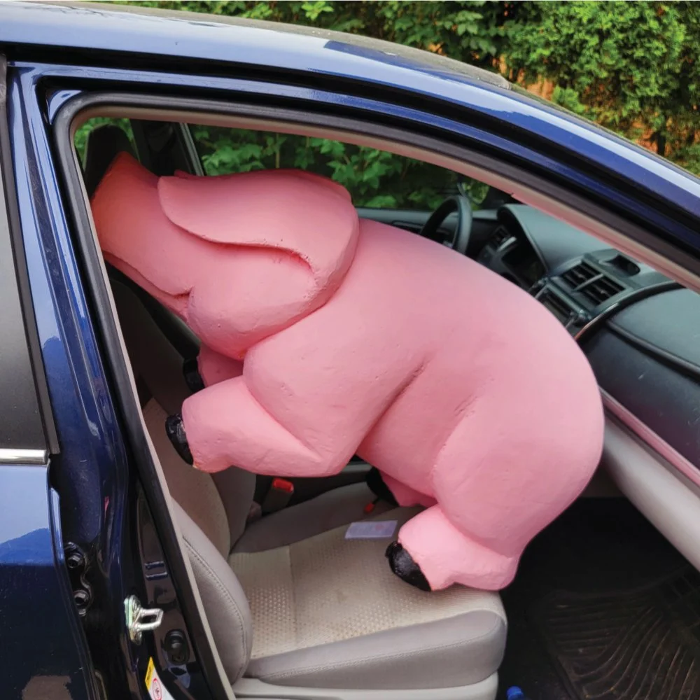 I plastered up damage to the pig, gave him a new coat of paint and updated the hand lettering on the pig’s side.