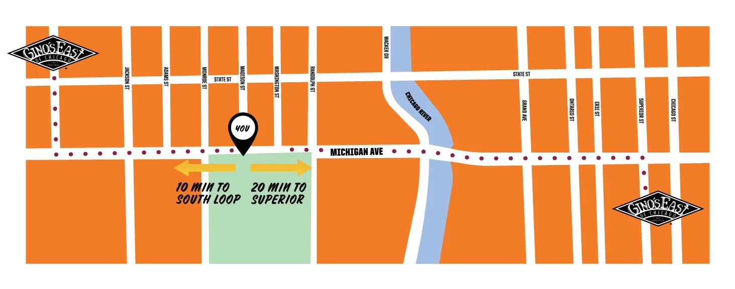 Nothing sells deep dish like a cheese pull. Gino’s East launched two summer bus shelter campaigns to help attract more commuters. These bus shelter ads were located on Wacker & Michigan and Madison & Michigan to help drive interest and traffic to the Chicago Gino’s East locations. Each ad included a small map with directions to the nearest Gino’s East.
