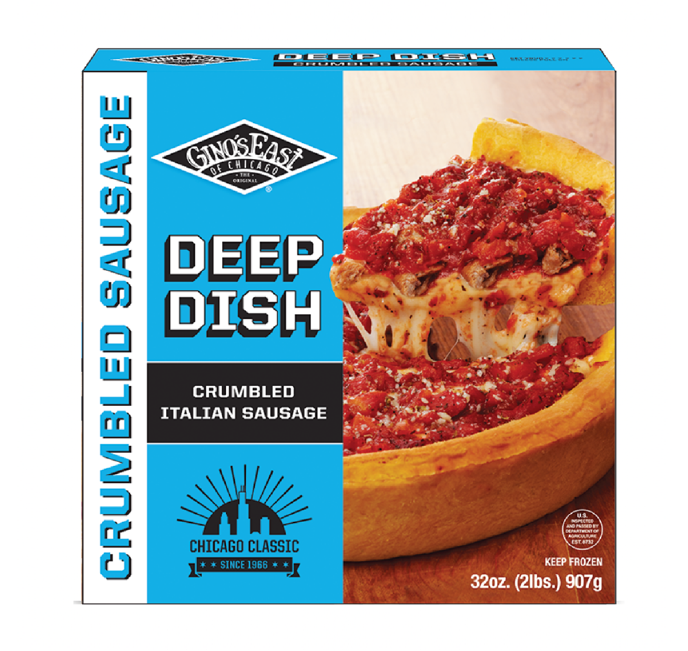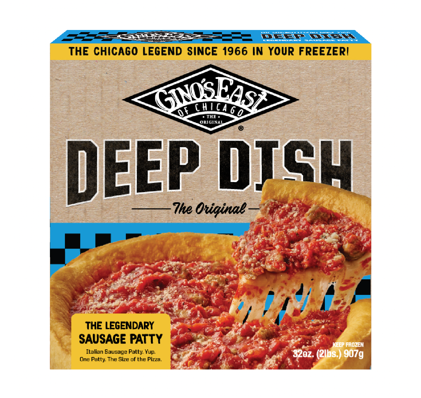 The new and improved Deep Dish cartons hit shelves in early 2025 across the Chicago land area. Consumer reception has been very positive and the Gino’s East team has reported an increase in restocking by grocery stores like Jewel Osco and Aldi. If you’re in the Chicago area, swing by the freezer aisle and grab a pie for yourself!