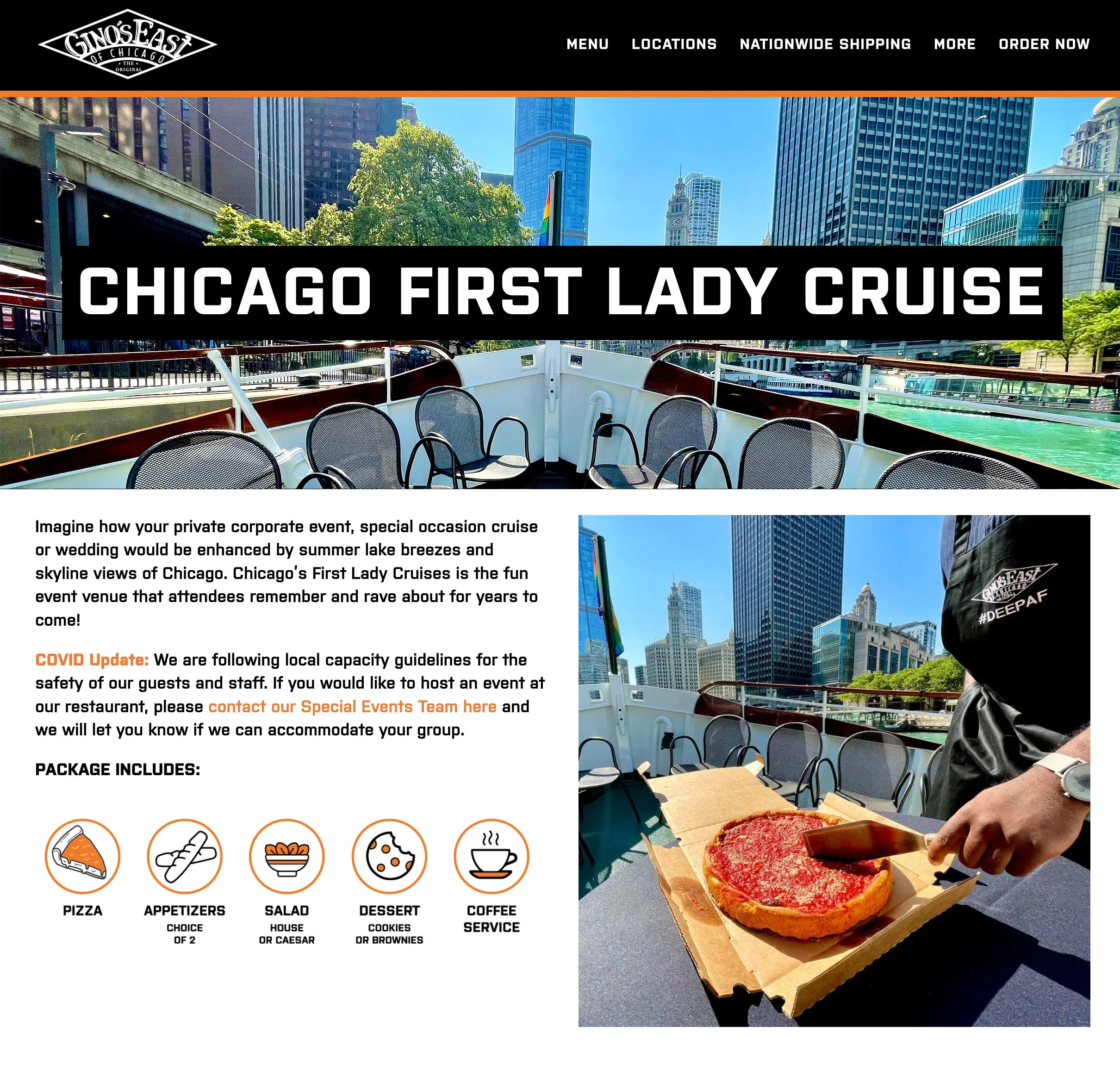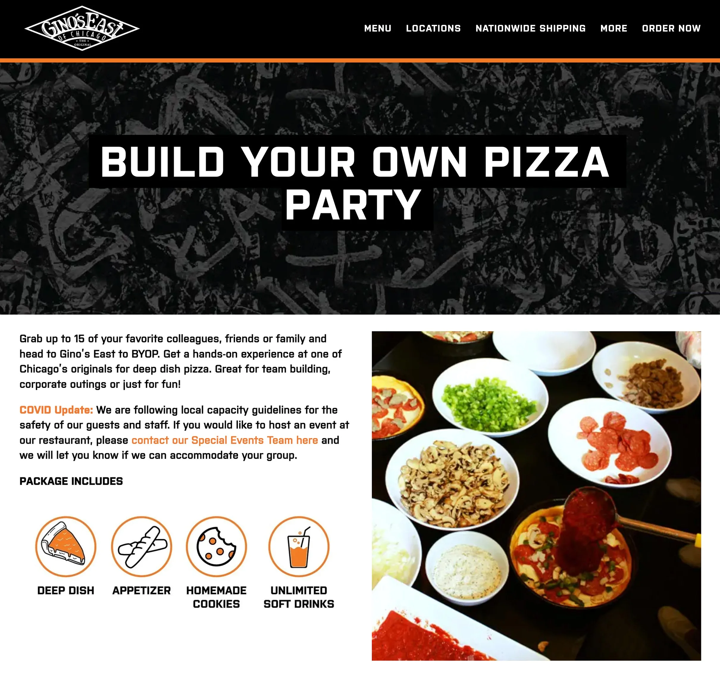 Website redesign of the Gino’s East website. This redesign included the creation of icons to be used exclusively on the website in order to create visual appeal to customers.