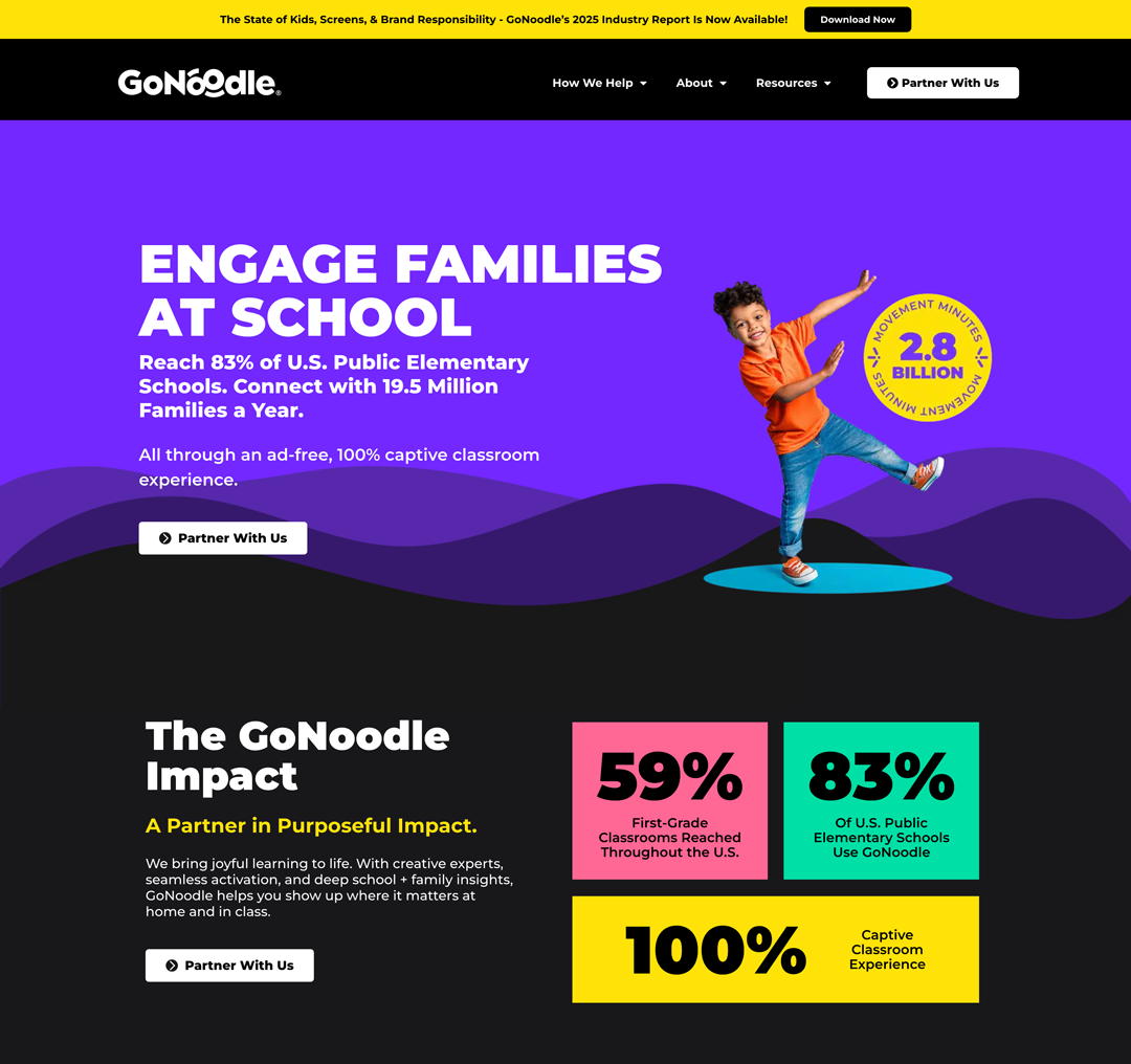 GoNoodle is an online video platform that supports teachers and families with children K-5. In 2025, the platform wanted to strengthen their partnership and business outreach.