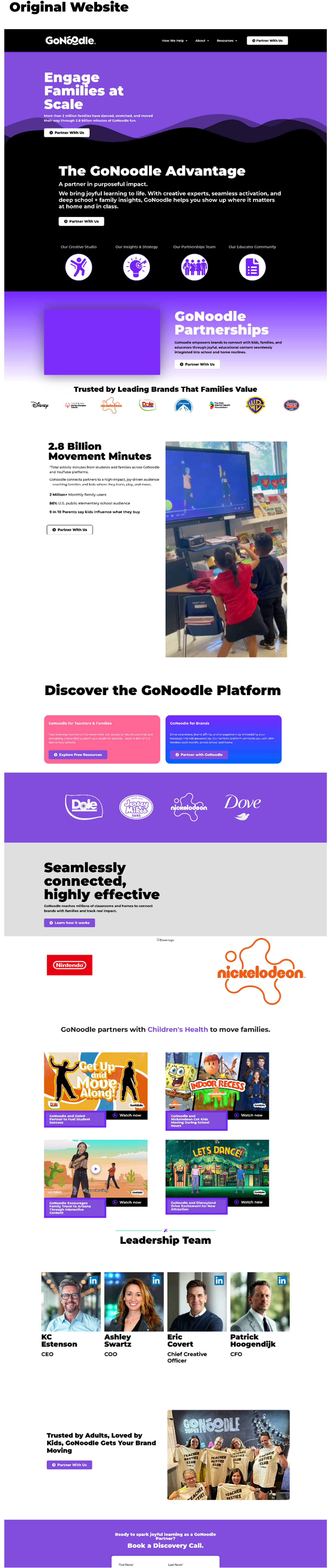 GoNoodle was not happy with the work their internal team had done on the partnership page and wanted to see what BatesMeron could do instead.