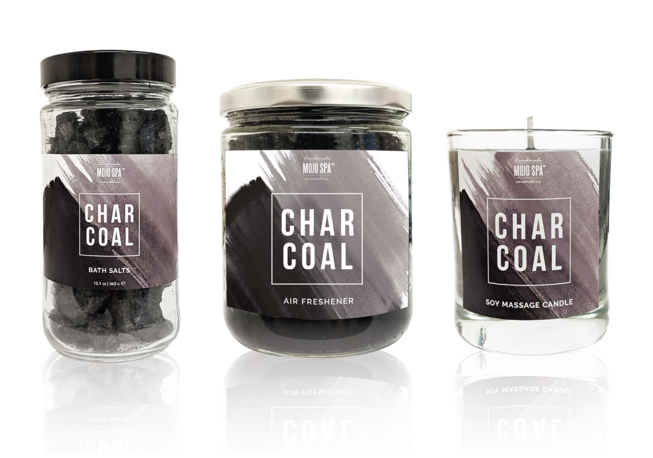 Charcoal was created for a new luxury collection by Mojo Spa. This luxury collection focuses on the use of activated bamboo charcoal in each of its products. I created a unique set of charcoal strokes as the main focus of the label in order to highlight the use of the unique ingredient.