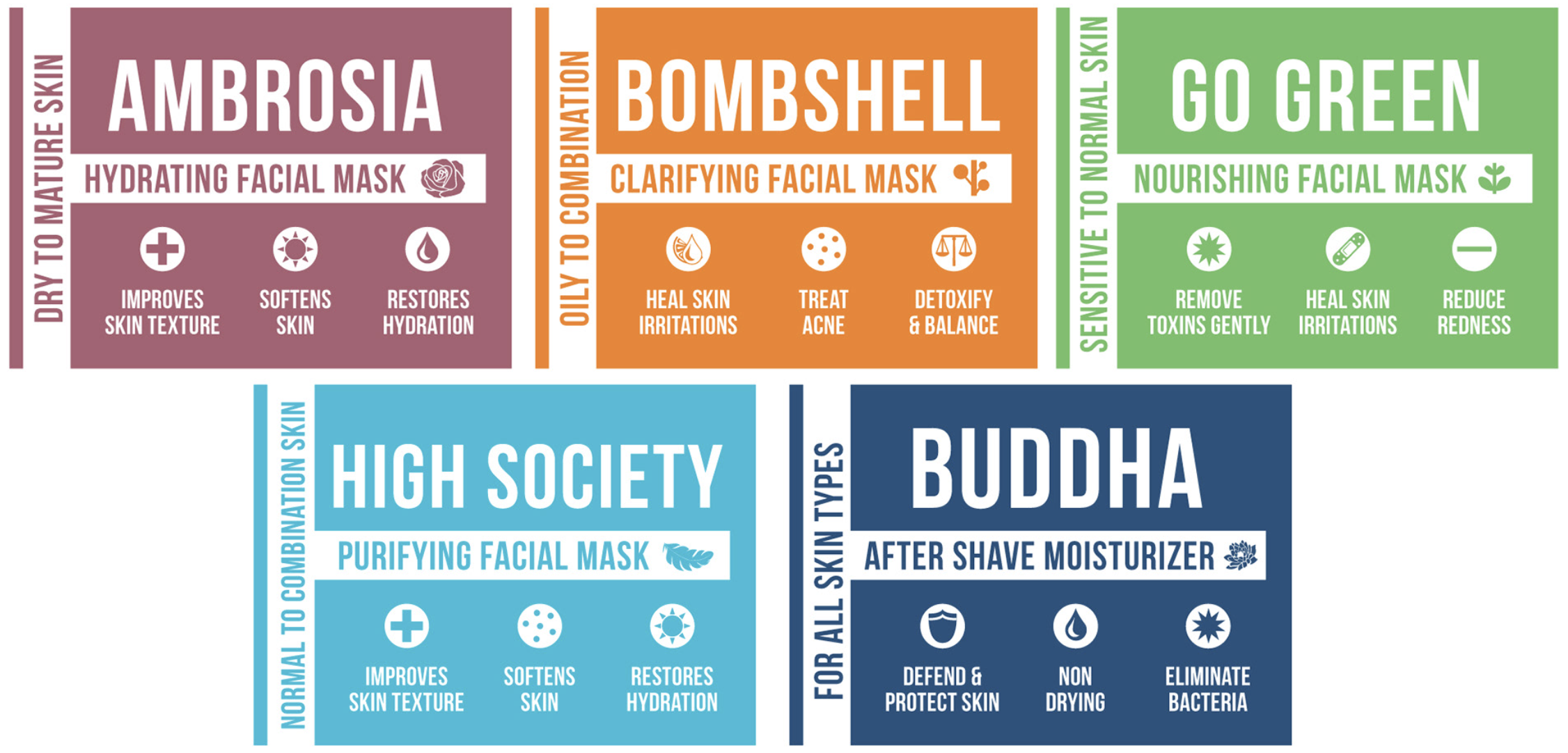 Mojo Spa wanted to create a system for their skincare collections in order to better help their customers self select the right product for them. Skincare can be extremely confusing, even for those well informed, so we began by creating a system to better serve Mojo Spa's customers. Each collection clearly identifies itself by name, skin type and individual ingredient benefits.