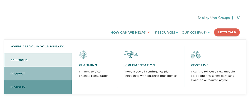 Sability, a premier UKG partner, needed help turning their website into a usable sales tool. In a sea of UKG implementation partners, Sability wanted to make sure they rose to the top.